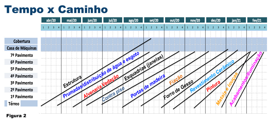 A plataforma cria então uma planilha chamada “tempo x caminho’’, que apresenta em forma de gráfico todas as definições do cronograma, definindo os prazos de cada atividade, como mostra a Figura 2.