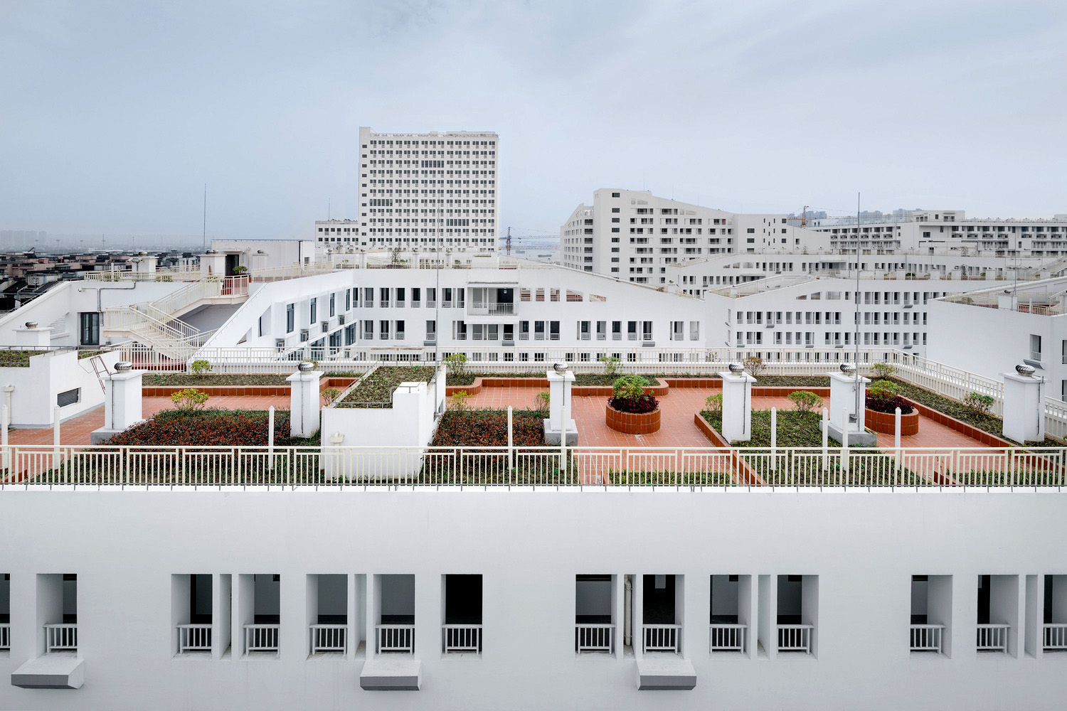 Em uma estratégia eficiente para a habitação social, projeto na China criou espaços públicos e pavimentos comunitários em pequenos apartamentos. Foto: Atelier GOM