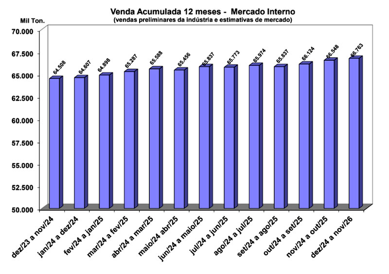 No acumulado do ano (janeiro a novembro), os números alcançaram 62,2 milhões de toneladas, um crescimento de 3,6% comparado a igual período do ano passado.