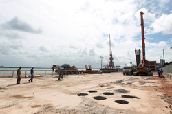 ...Atualmente, 50 homens trabalham no canteiro de obras onde está sendo construído o Terminal de Passageiros do Porto de Salvador. O projeto está orçado em R$ 30,2 milhões e prevê a construção de espaço de lazer com restaurantes e um receptivo turístico distribuídos numa área total de 3,4 mil m².