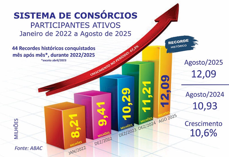 Registrando novo recorde histórico, os participantes ativos atingiram 12,09 milhões em agosto, ou 10,6% acima dos 10,93 milhões anotados no mesmo mês de 2024.