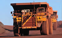 Duas coisas saltam aos olhos quando se está dentro das minas de ferro da Vale. A primeira é a cor avermelhada da poeira citada anteriormente. Ela está por todos os lados: no chão das ruas, nas folhas das plantas, no solado das botas dos operários, nos carros e máquinas que circulam por todos os lados. Ela deixa a mina com uma aparência marciana, inóspita. A outra é o tamanho dos equipamentos. O que se vê logo de cara são os caminhões fora de estrada. Eles parecem um caminhão basculante, desses usados para carregar pedras, mas num tamanho família. Ao todo, 105 deles circulam pela mina com até 400 toneladas de carga. São 800 mil toneladas de material carregadas num período de 24 horas, suficiente para encher o estádio do Maracanã em um dia. Outras máquinas impressionam pelo gigantismo. Uma recuperadora, usada para estocar minério de ferro, tem a altura de um prédio de 15 andares.